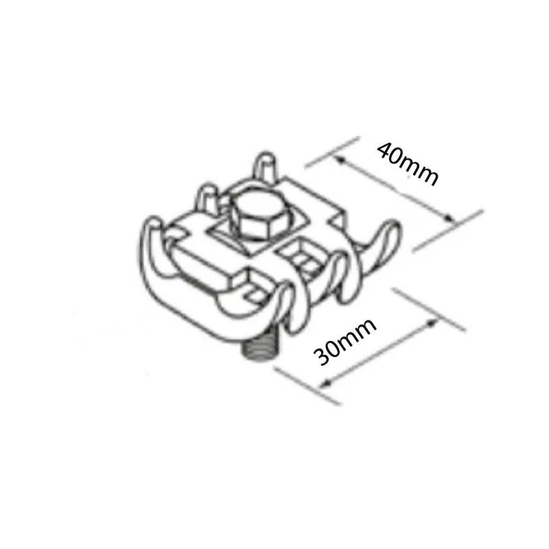 Dotato di un sistema di serraggio meccanico con viti e dadi in acciaio zincato, il morsetto è progettato per offrire alta resistenza alle sollecitazioni meccaniche. La geometria a chiave esagonale consente una facile applicazione della coppia di serraggio, garantendo una compressione uniforme e riducendo il rischio di danni ai cavi durante l'installazione.