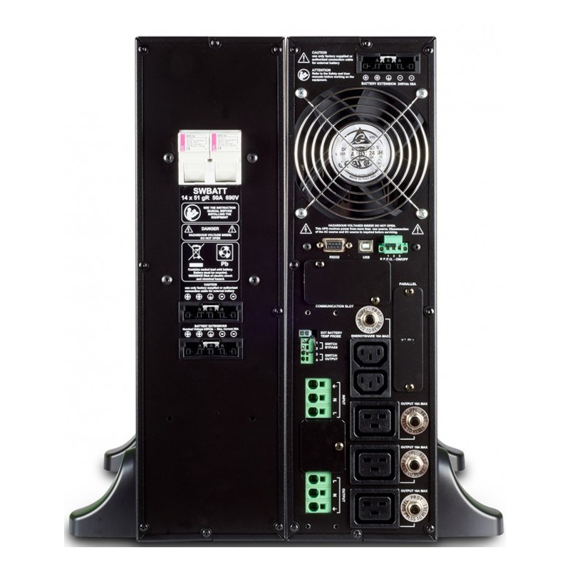 Sentinel Dual può essere installato a pavimento in configurazione tower o in rack per applicazioni di rete e server. La gamma Sentinel Dual è disponibile nei modelli da 4 kVA e 5-6-8-10 kVA/kW con tecnologia ON LINE double conversion (VFI): il carico è alimentato costantemente dall'inverter, che eroga una tensione sinusoidale filtrata e stabilizzata in termini di tensione, forma e frequenza. Inoltre, i filtri di ingresso e uscita aumentano notevolmente l'immunità del carico a disturbi di rete e fulmini.