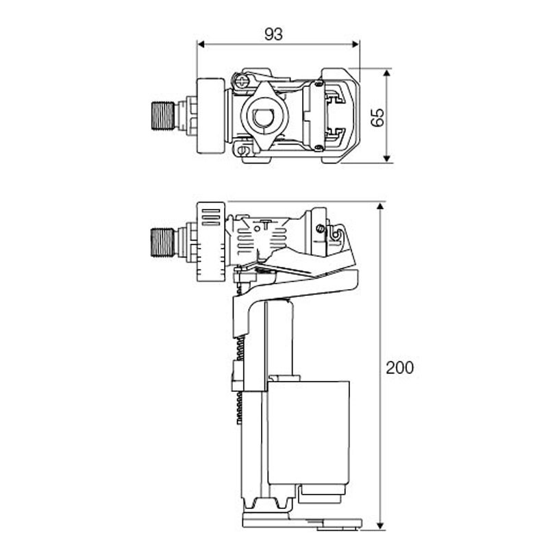 Galleggiante universale Oli Unic Side con connessione laterale e superiore, compatibile con cassette ad incasso ed esterne delle principali marche. Compatto, silenzioso e progettato per risparmiare acqua, con le seguenti caratteristiche: