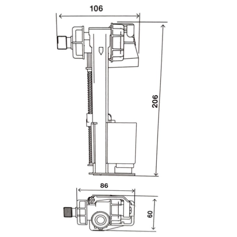 - Galleggiante con caricamento ritardato: apre il passaggio dell'acqua solo una volta che la valvola di scarico è in posizione di chiusura