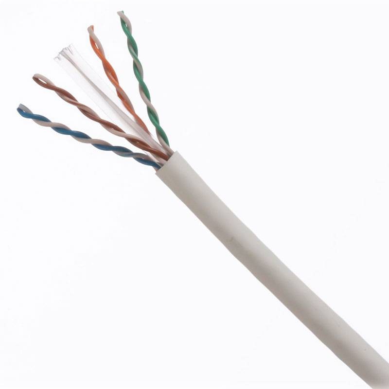 Il cavo in rame TX6000 Cat 6 U/UTP è costituito da conduttori in rame AWG 23 con isolamento in HDPE. I conduttori sono intrecciati a coppie e separati da un divisore trasversale e ricoperti da una guaina LSFRZH.