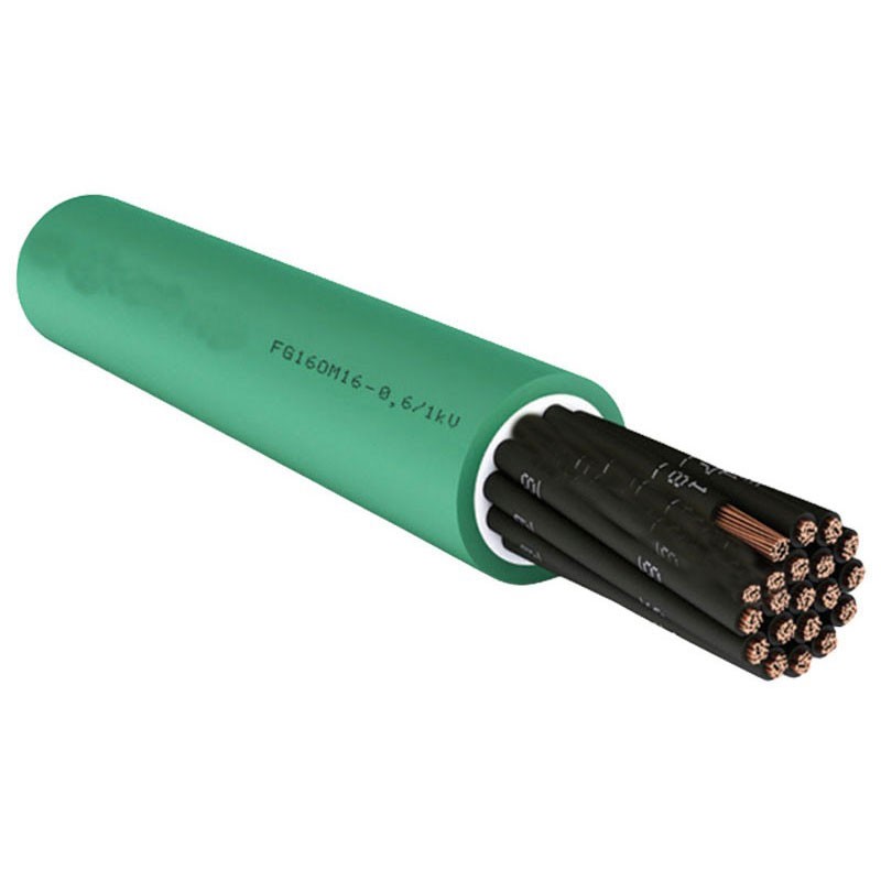 Cavo multipolare per energia isolato in gomma etilenpropilenica, ad alto modulo di qualità G16 sotto guaina termoplastica di qualità M16, con particolari caratteristiche di reazione al fuoco e rispondente al Regolamento Prodotti da Costruzione (CPR). Cavo multipolare con conduttori flessibili per posa fissa.