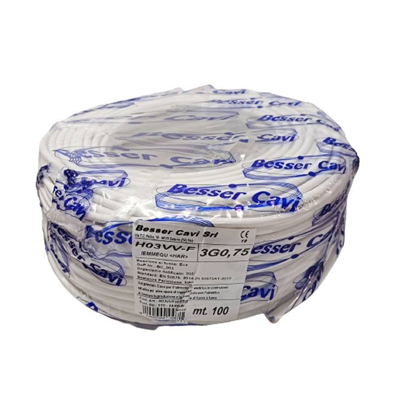 Cavo gommato flessibile H03VV-F 3x0,75mmq bianco bobina 100 metri