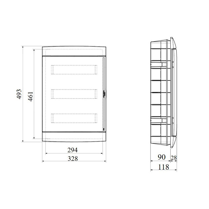 | Dimensioni frontali (BxHxP) | 330 × 493 × 28 mm |