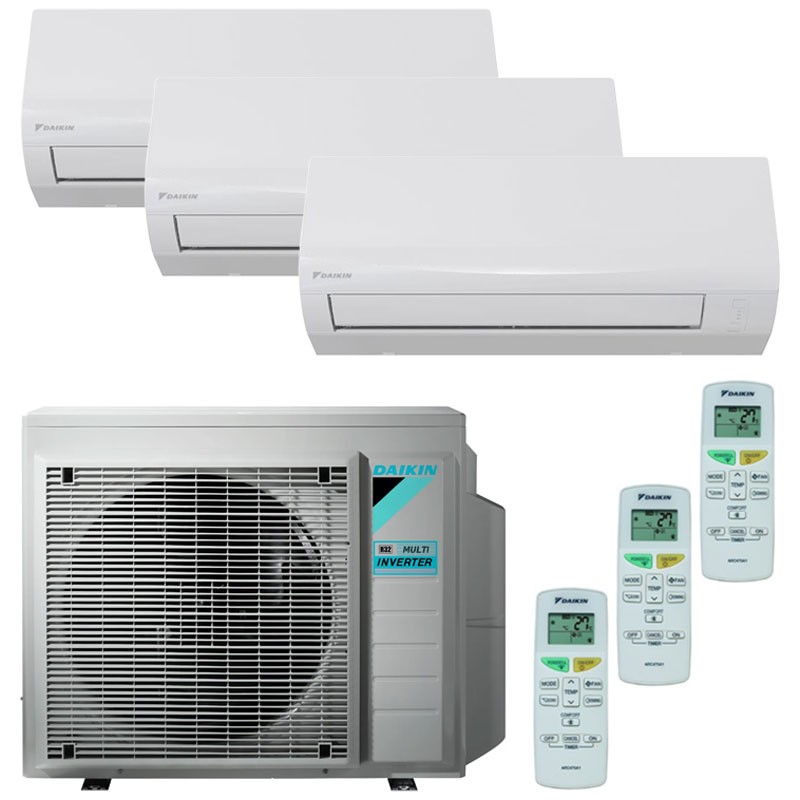 Climatizzatore Trial Split Daikin Sensira 2,5kW+2,5kW+3,5kW, con GAS R32 compreso, Classe energetica A++/A+ il Kit è composto da: