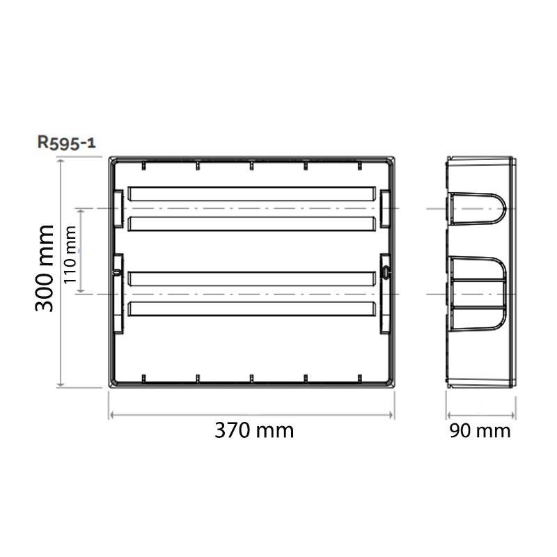Cassetta per collettori Giacomini R595AY002 in plastica, dimensioni 370x300x90 mm, ideale per collettori in barra da 3/4 o 1 e modulari DN25.