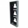 Custodia da parete Comelit 3 moduli per pulsantiera Ultra, composta dal supporto metallico che permette di fissare saldamente i moduli senza l'utilizzo di viti e da una cornice realizzata in pressofusione di alluminio trattata per cataforesi per aumentare la resistenza ai processi di corrosione chimica e ambientale, compresi i raggi UV. Sporgenza dalla parete di soli 35 mm.