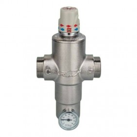 Miscelatore termostatico Far per impianti sanitari è progettato per garantire una temperatura costante dell’acqua miscelata nei sistemi sanitari, proteggendo gli utenti da improvvisi sbalzi termici e riducendo il rischio di scottature. Grazie alla funzione antiscottatura, il dispositivo blocca automaticamente l’erogazione dell’acqua calda in assenza di quella fredda, assicurando un funzionamento sicuro ed efficiente, con le seguenti caratteristiche: