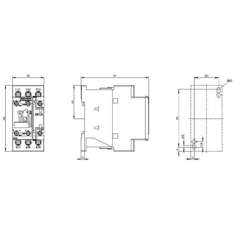 Contattore Siemens Sirius 3P 9A 1 NO + 1 NC 24V AC 3RT20231AB00
