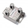 Derivatore Fracarro PA-DE 1 via 22 dB (cod. 280713) con connettori F 52400 MHz per impianti TV e satellitari. Corpo pressofuso nichelato, alte prestazioni, passaggio DC e predisposizione per messa a terra.
