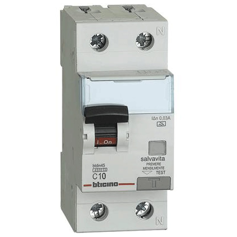 Interruttore magnetotermico differenziale Bticino 1P+N 10A 30mA tipo A 4,5kA 2 moduli GA8813A10