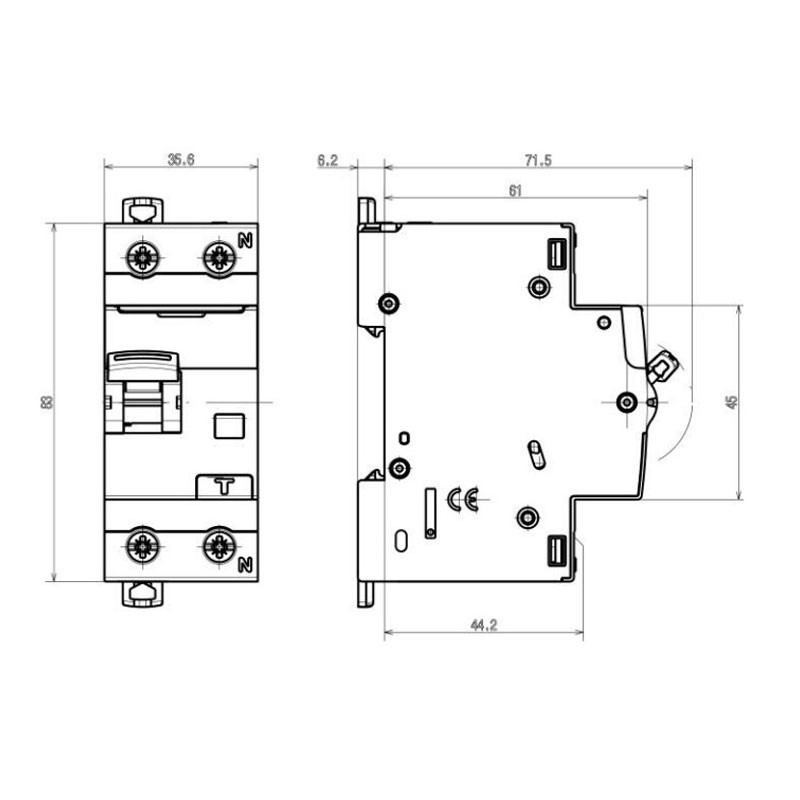 L’interruttore è progettato in 2 Moduli, rendendolo compatibile con la maggior parte dei quadri elettrici standard. Con dimensioni compatte, offre un’installazione semplice e veloce. Può essere collegato con conduttori fino a 25/35 mmq, garantendo versatilità e adattabilità.