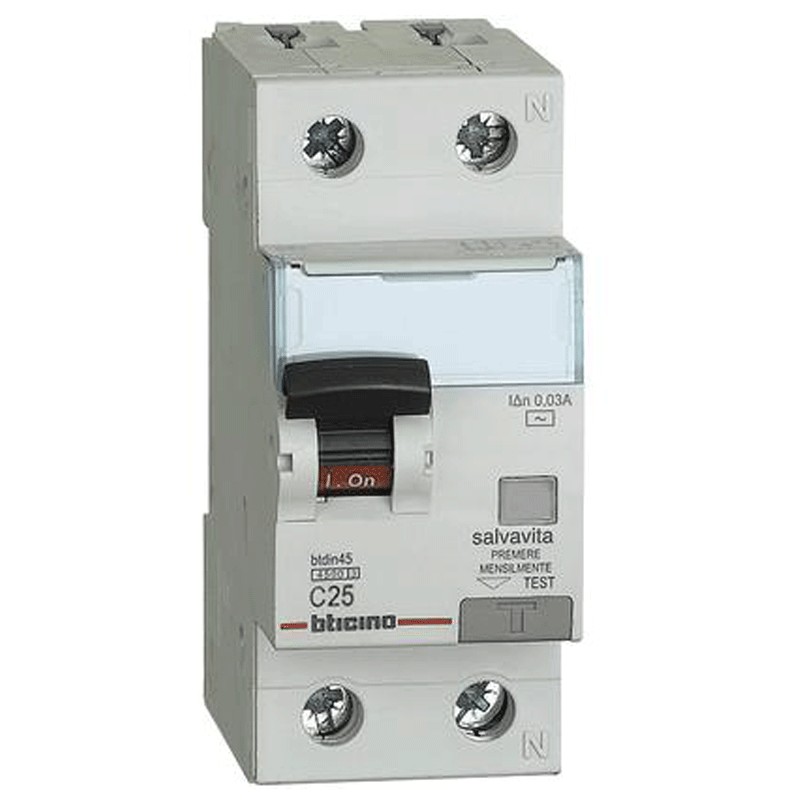 Interruttore Magnetotermico Differenziale Bticino 1P+N 25A 30mA Tipo AC 4,5kA 2 Moduli
