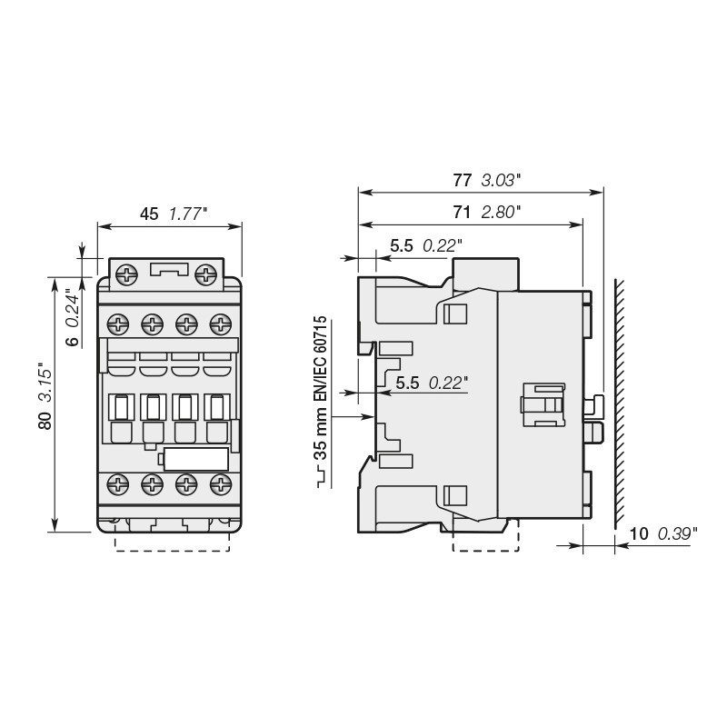 - Grado di protezione terminali ausiliari IP40, bobine IP20, terminali principali IP20