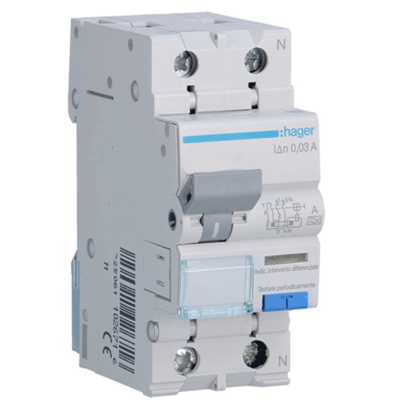 Interruttore Differenziale Magnetotermico Hager, combina protezione magnetica, termica e differenziale in un unico dispositivo compatto. Ideale per la sicurezza degli impianti elettrici, offre un'elevata affidabilità contro sovraccarichi, cortocircuiti e dispersioni di corrente, con le seguenti caratteristiche: