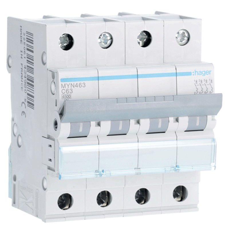 Interruttore magnetotermico Hager 4P 63A 4,5KA C 4 moduli MYN463