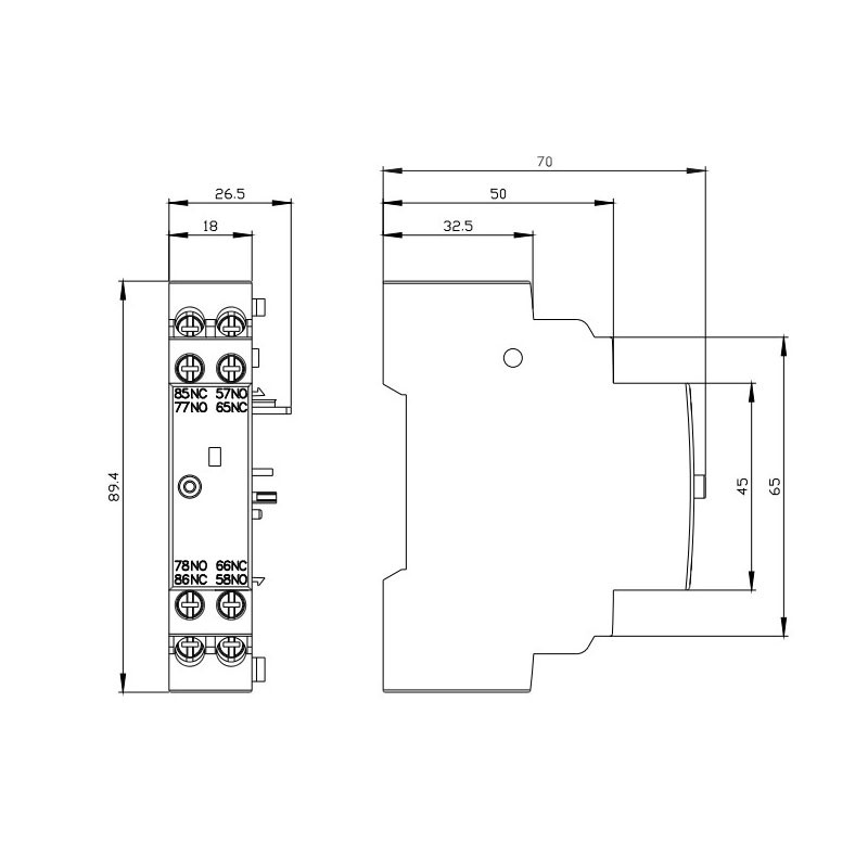 Modulo di segnalazione per interruttori automatici Siemens serie 3RV2, compatibile con grandezze S00, S0, S2 e S3. Con 1 contatto normalmente aperto e 1 normalmente chiuso, connessione tramite morsetti a vite, con le seguenti caratteristiche: