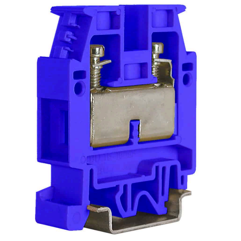 Morsetto passante standard Cabur serraggio a vite, Sezione nominale 16 mm², Tensione nominale 1000V, Corrente nominale 76A, Calibro B7, colore Blu.