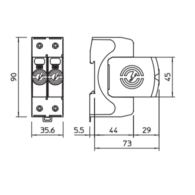 - Capacità di scarica fino a 40 kA (8/20) per polo tramite varistori ad alte prestazioni