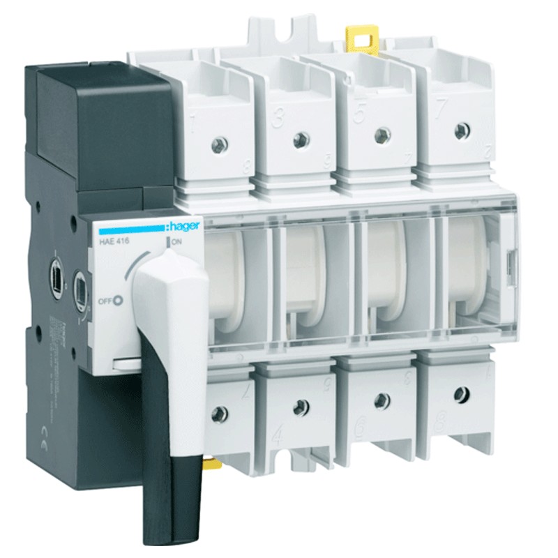 Sezionatore Hager 4P 160A 8 moduli con comando rotativo HAE416