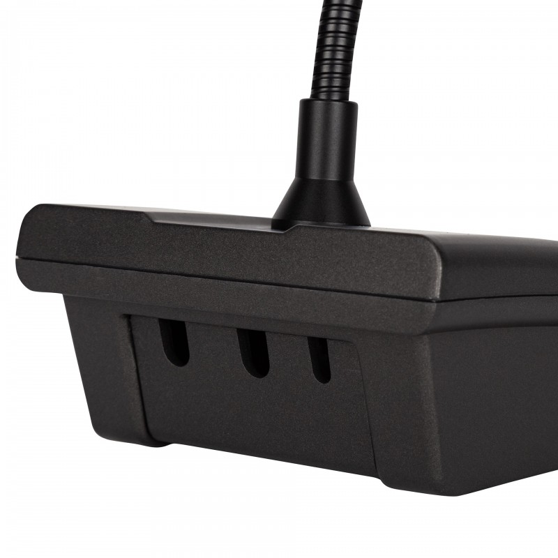 - Corpo in materiale plastico particolarmente resistente agli urti e agli sfregamenti, con braccio flessibile lungo 300 mm