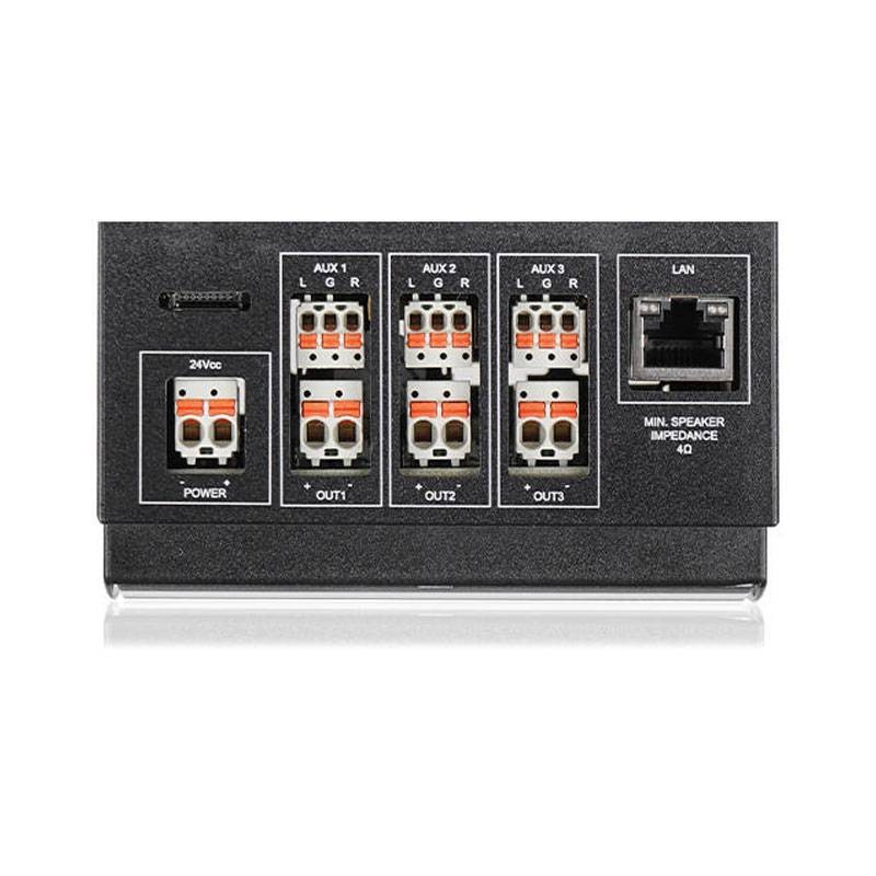 - Ingressi: 3 ingressi stereo sbilanciati, Micro SD, Alimentazione 24Vcc (150W max).