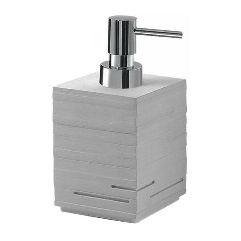 Dosasapone dispenser liquido d'appoggio Gedy Quadrotto colore grigio, realizzato in resina, con erogatore in plastica cromata, dimensioni 8,2x8,2x16cm.