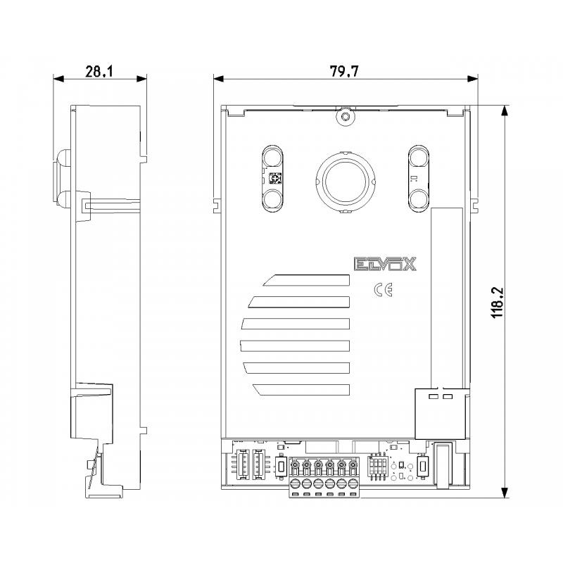 40135 Unità elettronica Due Fili Plus per targa audio video a colori, con obiettivo fisso grandangolare 100°/82° orizzontale/verticale, 1 pulsante incorporato, da utilizzare negli impianti Due Fili