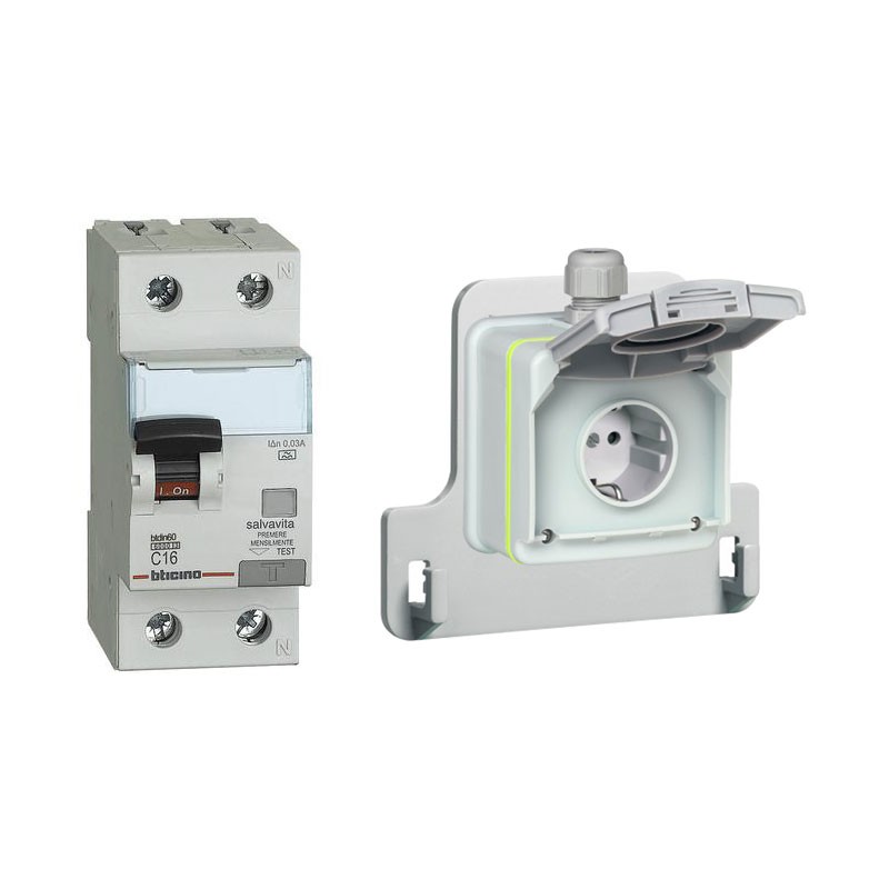 Compreso nella confezione 1 interruttore magnetotermico 16 A, curva C, 30 mA, tipo F (art. GN8813F16).