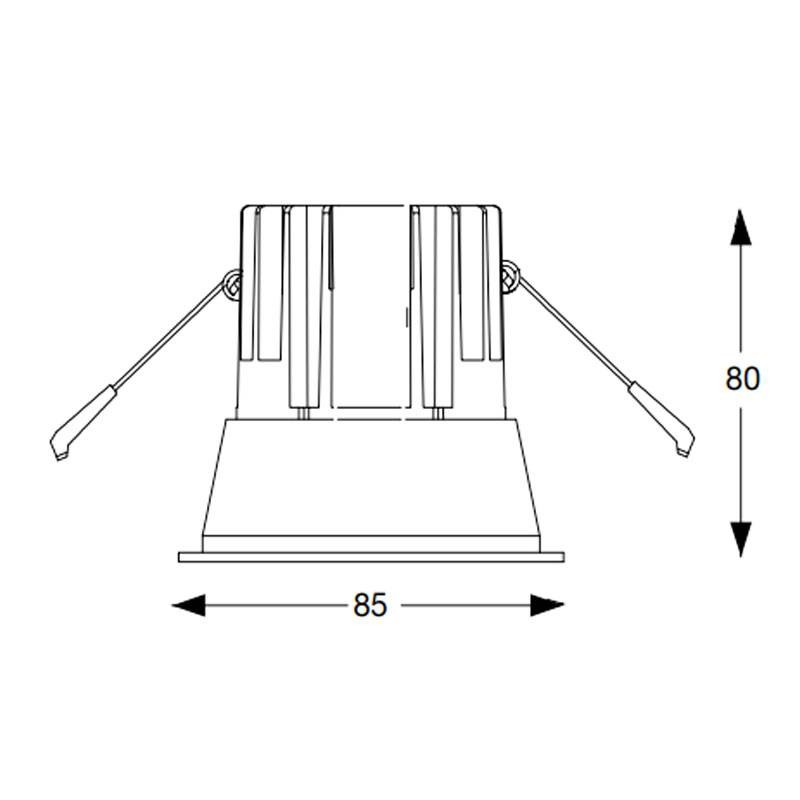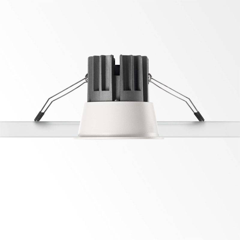 Faretto ad incasso in alluminio pressofuso con ghiera rotonda o quadrata, adatto per installazione su soffitti in cartongesso. Finitura nera opaca RAL 9011.