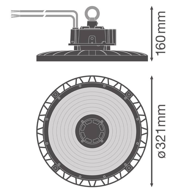 Con una resa luminosa fino a 26.700 lumen e un'efficienza di 178 lm/W, questo apparecchio garantisce un'illuminazione uniforme e intensa anche in spazi ampi con soffitti elevati. La temperatura colore di 4000K offre un bianco neutro ideale per ambienti di lavoro, magazzini, aeroporti e centri commerciali.