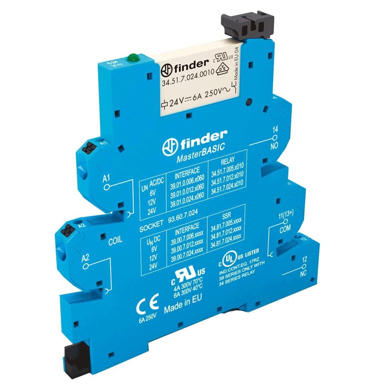 Interfaccia modulare a relè Finder MasterBasic Tipo 39.01, con le seguenti caratteristiche: