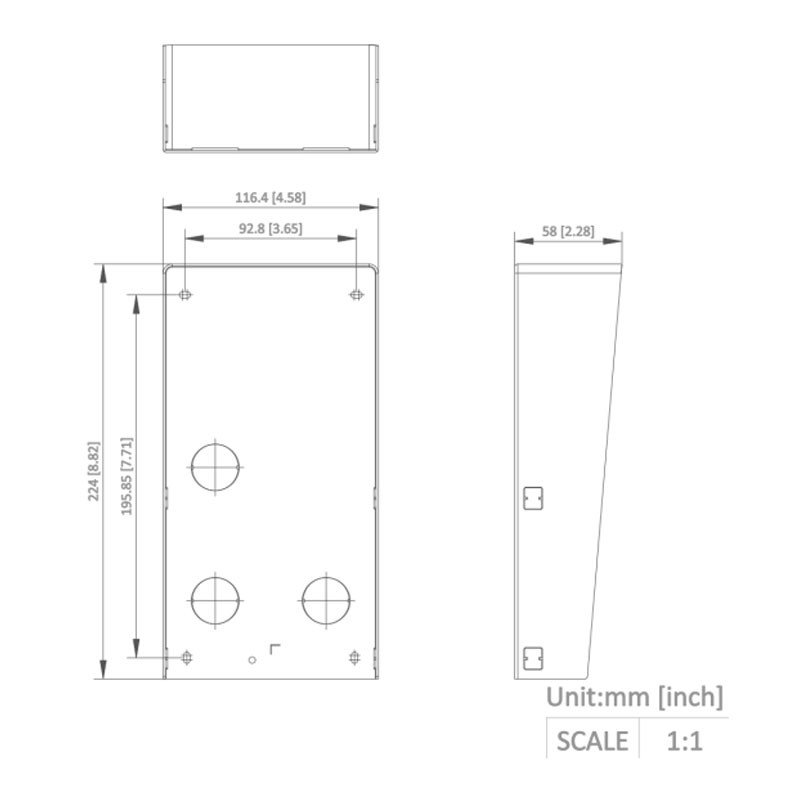Le dimensioni 116,4 × 224 × 58 mm lo rendono compatto, quindi non ingombra troppo la facciata e mantiene un'estetica pulita. Il peso di circa 500 g contribuisce a una sensazione di solidità, tipica degli accessori in metallo pensati per utilizzo outdoor.