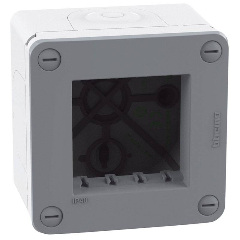 Scatola idrobox Bticino MatixGO 2 moduli, grado di protezione IP40, colore grigia, compatibile con i frutti della serie MatixGO.