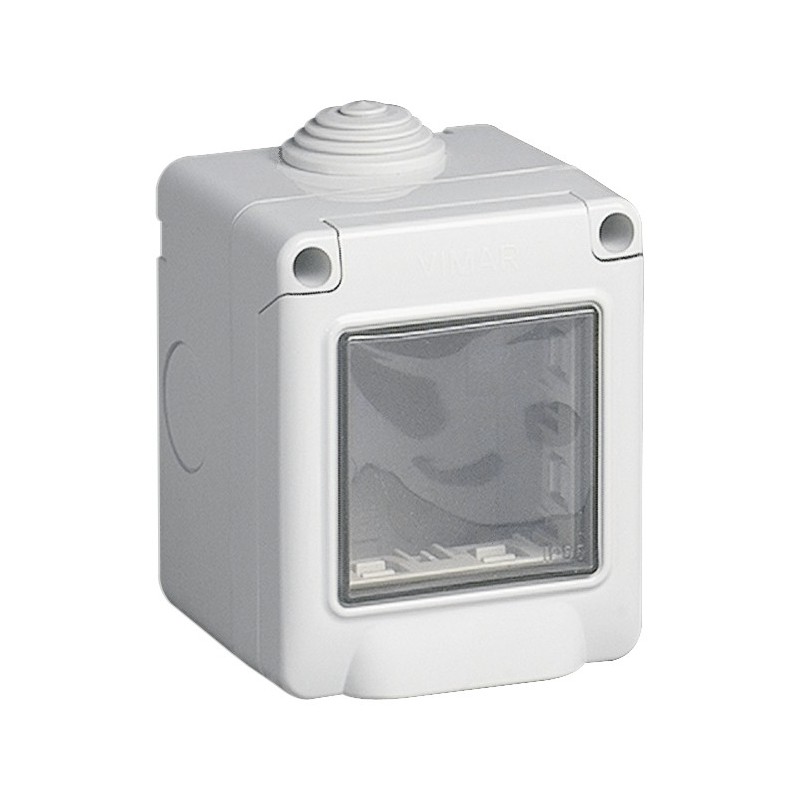 Contenitore da parete Vimar, grado di protezione IP55, 2 moduli. E' possibile installare al suo interno tutti i prodotti Vimar serie Eikon, Plana e Arkè.