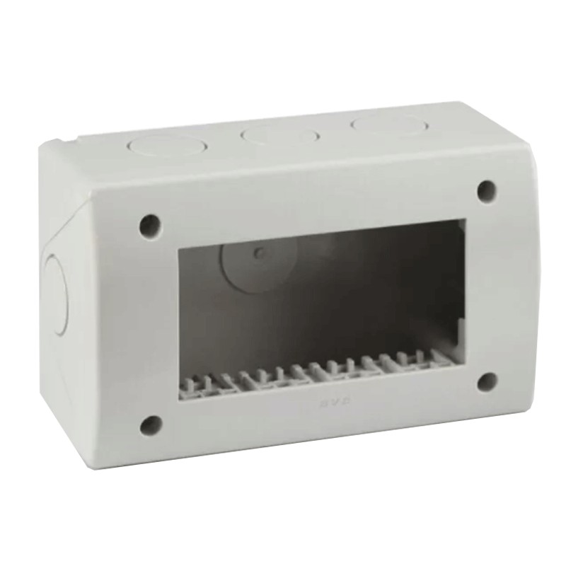 Contenitore Idrobox da parete autoportante Ave, 4 moduli per canalina, colore grigio RAL7035, grado di protezione IP40. Prodotto abbinabile solo alla Serie civile Ave S44.