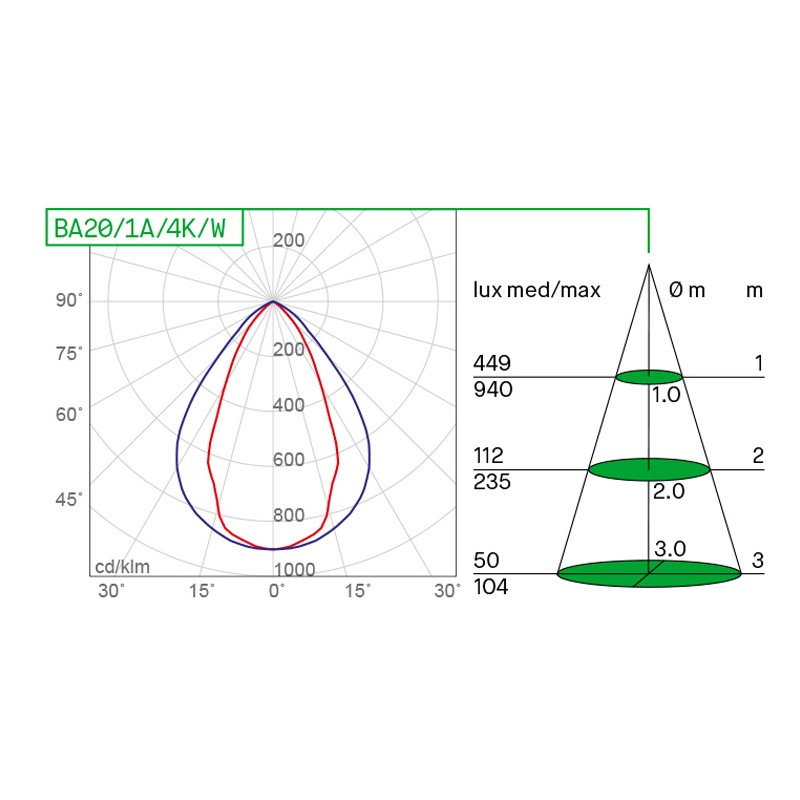 - Apparecchio LED per installazione a parete, con fascio mono direzionale