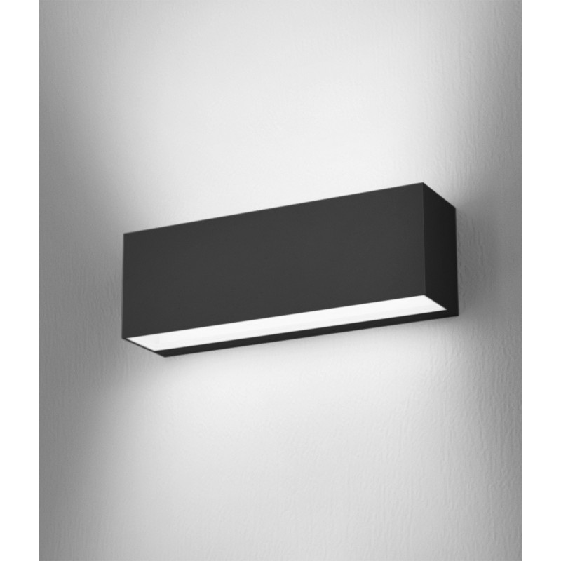 Apparecchio LED per installazione a parete, con fascio bidirezionale. LED HONGLI. Life time 36.000h (rendimento 70%). Corpo in alluminio pressofuso a basso contenuto di rame, verniciato grigio, bianco o nero antracite. L'apparecchio è dotato di base di fissaggio a parete pre cablata con morsetti ad innesto rapido. Vetro trasparente con diffusore microprismatico. Guarnizioni in silicone. Viti in acciaio Inox. Scheda LED dimmerabile a tensione di rete 220-240V.