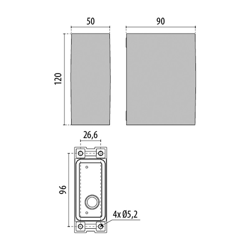 - Dimensioni: altezza 120 mm -larghezza 50 mm - spessore 90 mm