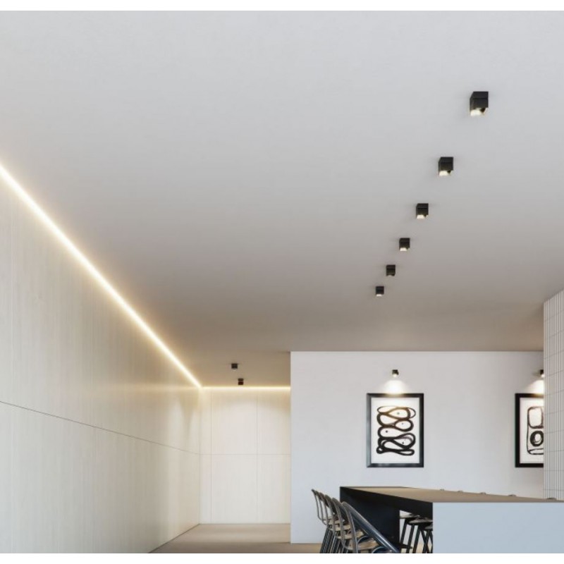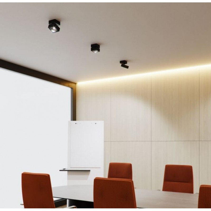 Il design squadrato e la finitura nera conferiscono all'Applique Rubyc un aspetto moderno e minimalista, perfetto per qualsiasi stile di arredamento. Progettata per il montaggio a parete o soffitto, l'applique è versatile e si integra facilmente in qualsiasi spazio interno.