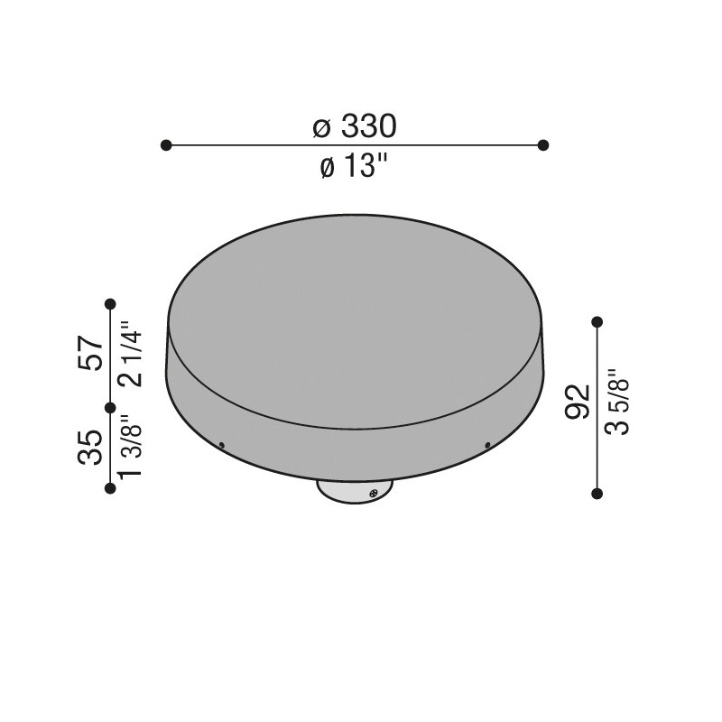 - Dimensioni: Diametro 330 mm - Altezza 92 mm - Spessore 57 mm