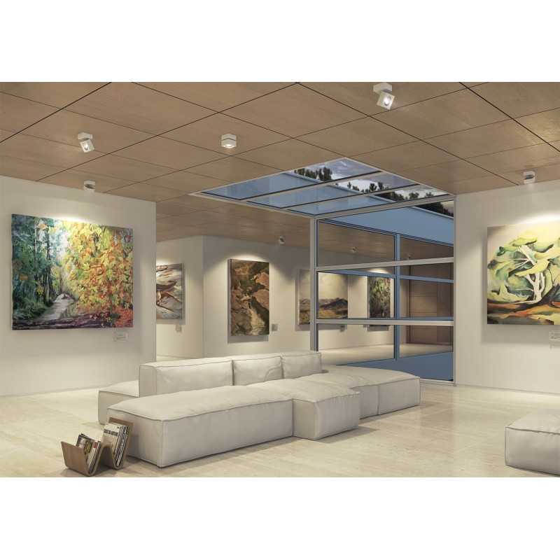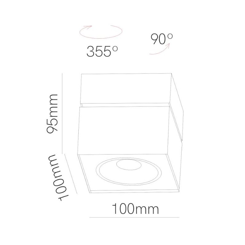 Progettato per l’installazione a soffitto o a parete, Rubyc ha un design squadrato e offre una luce inclinabile e regolabile grazie alla capacità di rotazione e rotazione di 90º e 355º, che garantisce un adattamento e un comfort totale agli ambienti.