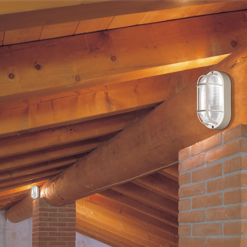 Realizzata in robusto tecnopolimero, con gabbia protettiva integrata, questa lampada assicura una lunga durata anche in condizioni ambientali difficili. Il grado di protezione IP44 la rende ideale per installazioni in ambienti esterni o umidi, resistendo a polvere e spruzzi d'acqua.