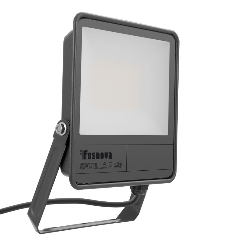Proiettore LED Fosnova Disano Sevilla 2 50W, luce naturale 4000K, 5500 lumen, colore Grigio Grafite, Grado di protezione IP65 per esterni, LED CRI 70.