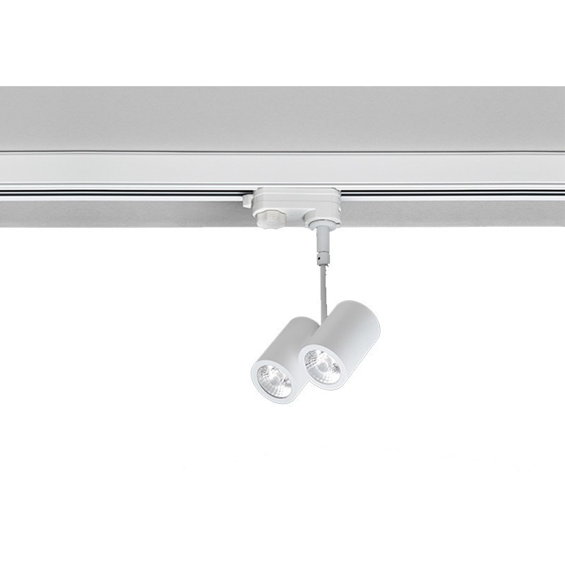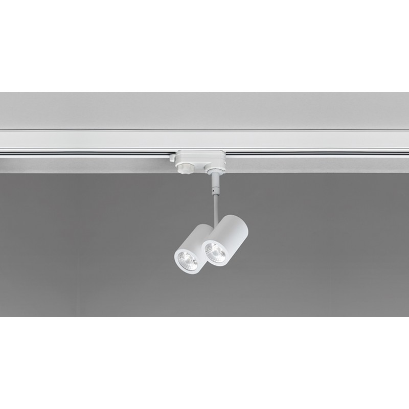 Proiettore LED orientabile per installazione su binario eurostandard. LED SAMSUNG. Life time 20.000h. Corpo in alluminio verniciato bianco goffrato. Riflettore antiabbagliamento. Alimentazione a tensione di rete 220-240V. Binari e accessori da ordinare separatamente. Apertura fascio 40° gradi.