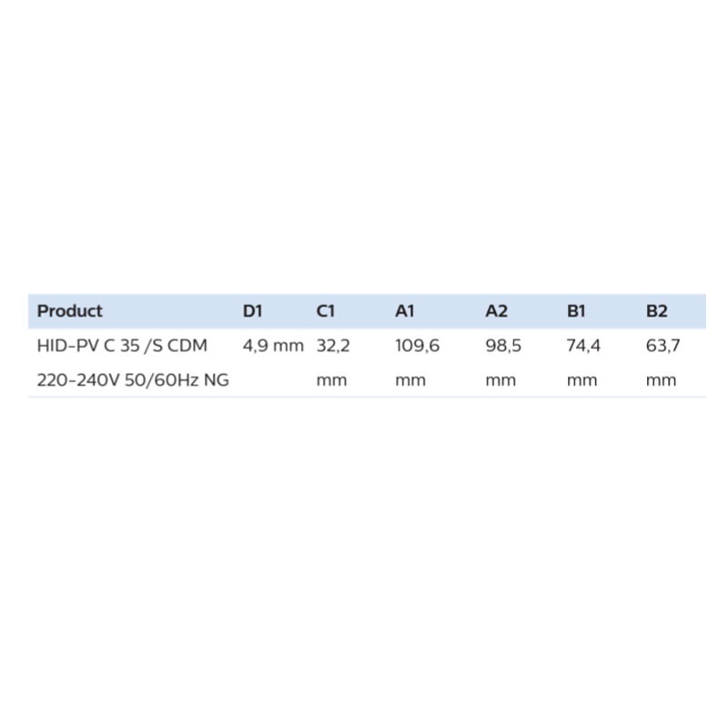 Alimentatore/reattore elettronico Philips HID-PV C 35 /S CDM, con le seguenti caratteristiche: