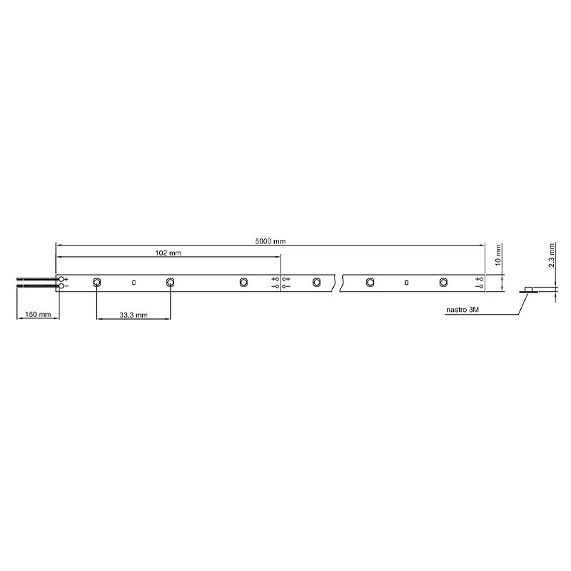 - LED: 60 al metro - Flusso luminoso per metro = 1080 Lumen - frazionabile ogni 100 mm