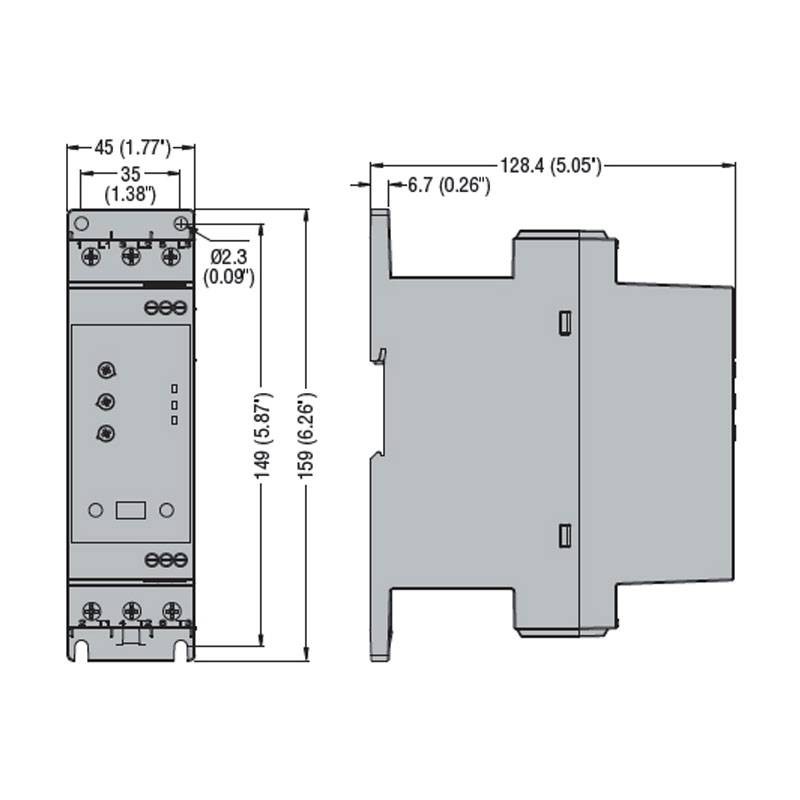 Dimensioni compatte: I soft starter ADXN sono caratterizzati da controllo su 2 fasi e sono realizzati in contenitore estremamente compatto, largo solo 45mm per l'intera gamma fino 45° (suddivisa su 2 taglie meccaniche che differiscono in altezza e profondità).