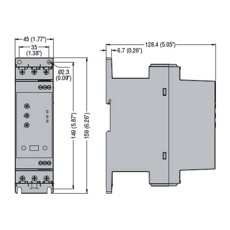 Montaggio: I soft starters ADXN possono essere fissati a vite o su guida DIN 35mm (IEC/EN/BS 60715). Il fissaggio a vite è realizzato tramite 4 fori presenti sulla base del contenitore, mentre per il fissaggio su guida DIN è presente un inserto in gomma che impedisce lo scorrimento del soft starter sulla guida.