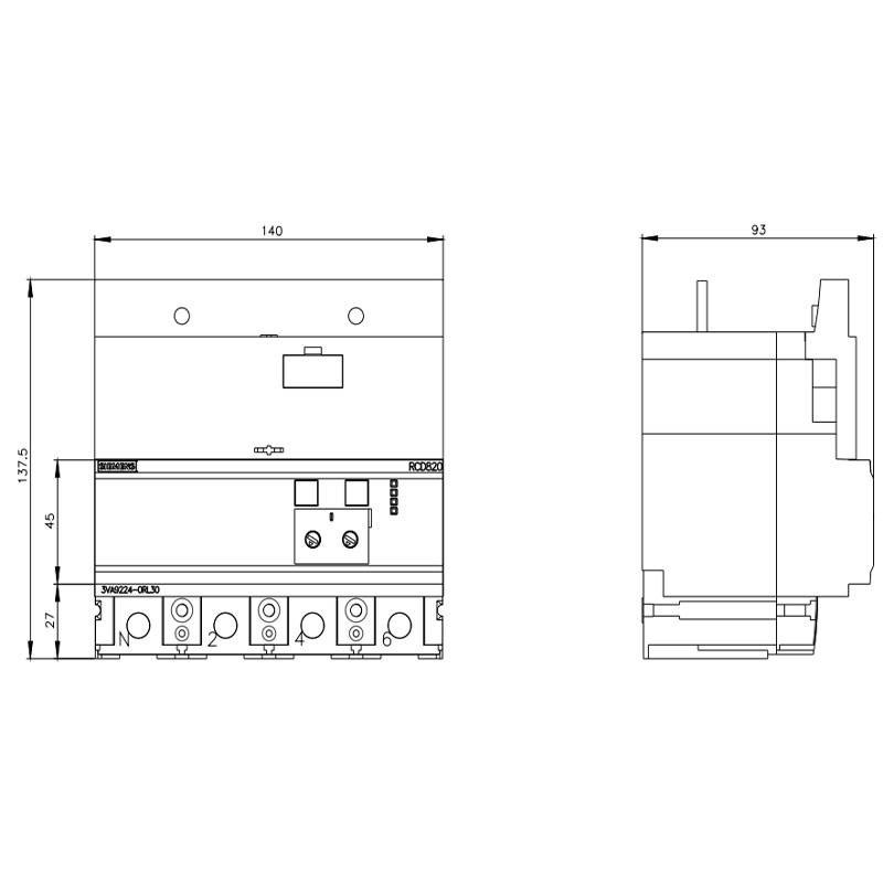 Il modulo è progettato per un'installazione solida con fissaggio a vite, con 4 poli e grado di protezione IP40 sul lato frontale, caratteristiche che agevolano l'integrazione ordinata in quadri BT. L'installazione lato carico (in basso) è pensata per essere coerente con l'architettura degli accessori 3VA2 e con la manutenzione nel tempo.
